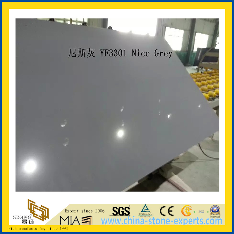 Polished Nice Grey Artificial Quartz Slabs for Kitchen Countertops (YQC)